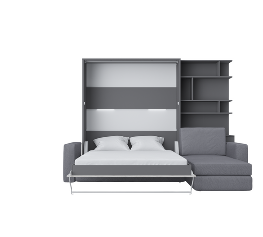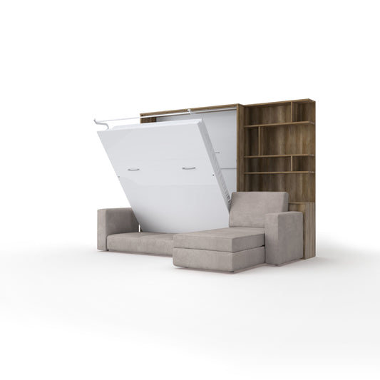 Murphy Bed INVENTO European Queen size with a Sectional Sofa and a Bookcase, mattress included