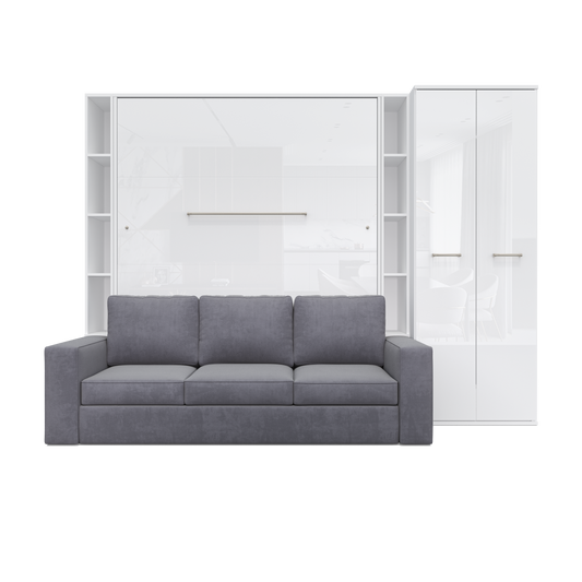 Vertical Queen size Murphy Bed Invento with a Sofa, two Cabinets and Wardrobe